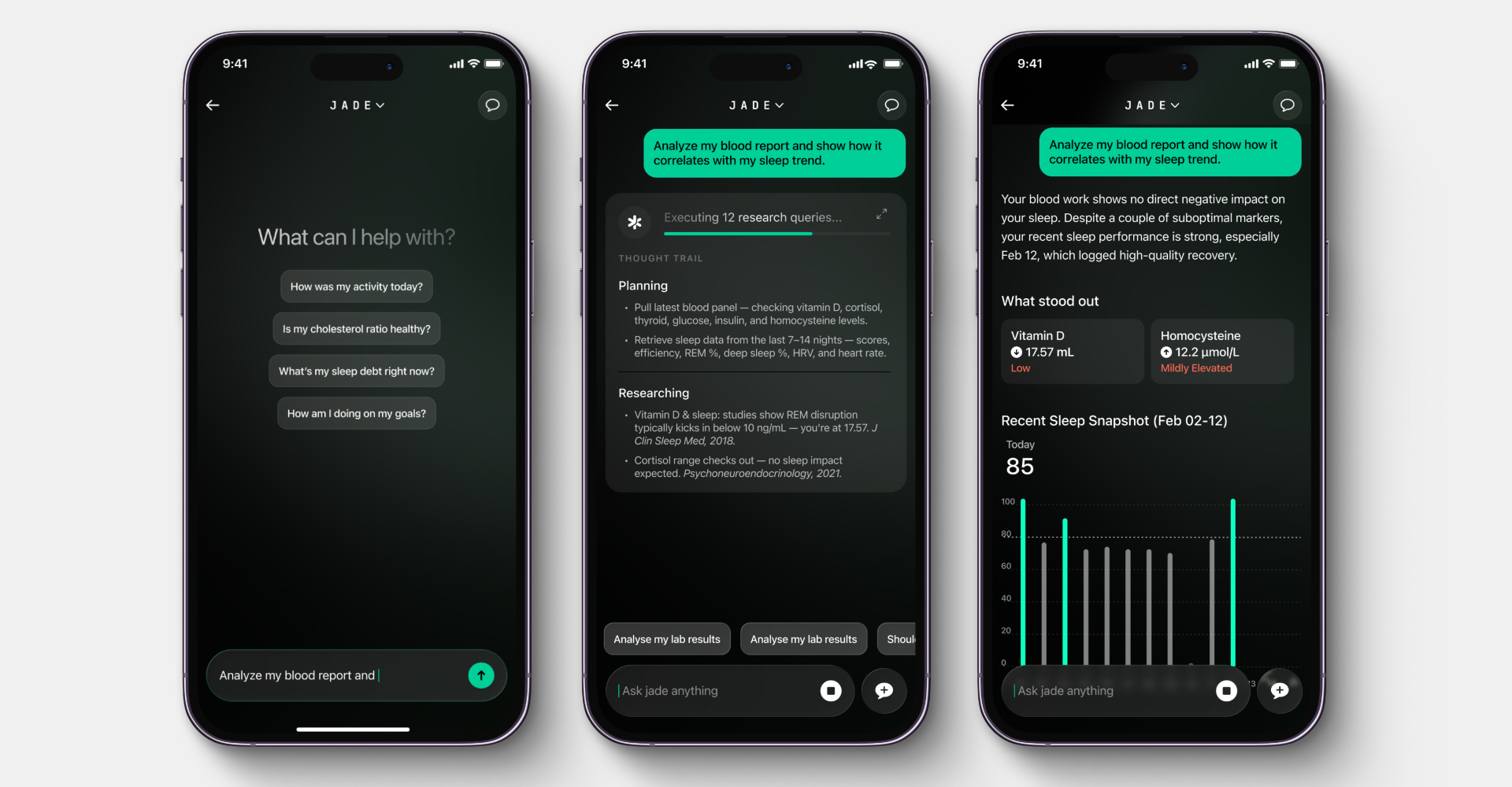“Most AI tools available today analyze past data,” he remarked. “Jade is designed to respond to your health in real time and highlight actions for users to consider.”