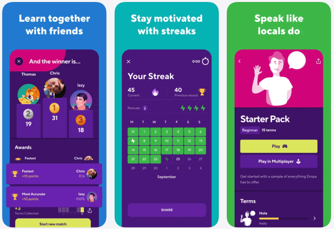 If you’re eager to learn a new language but prefer an alternative to Duolingo, Drops presents a viable choice. The app employs visually stimulating mini-games to assist you in acquiring vocabulary and essential phrases in over 45 languages, featuring bite-sized lessons meant to be completed in around five minutes daily.